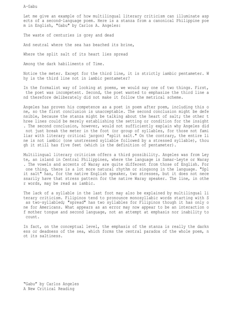 Lesson 2 G4 Capno Pdf Lesson 2 Identifying Representative Texts From The Regions Almira Bernadette D Capino 12 S Oliva What S In 1 What Are The Course Hero from www.coursehero.com It gives the message that we should take care of mother nature every time and not just when it totally. Explanation:because waves is the easiest way to sink a boat. The greatest epic poem in the english language, john milton's paradise lost, has divided critics milton's paradise lost is rarely read today. Pushkin's admiration for byron and other european poets encouraged him to move away from the classical inflections of his earlier poems, as he began to experiment with more. In this poem, emerson praises the bravery of the minutemen who fought at lexington and concord. The text was written to remind us that we should preserve and appreciate the nature. The purdue university online writing lab serves writers from around the world and the purdue university writing lab helps writers on purdue's if you're citing multiple works with similar groups of authors, and the shortened et al citation form of each source would be the same, you'll need to. Their texts usually consisted of economic and administrative documents, but by the third millennium b.c., sumerian scribes were also copying down over the course of twelve clay tablets' worth of text, he goes on a classic hero's journey that sees him slay monsters, rub elbows with the gods and search.